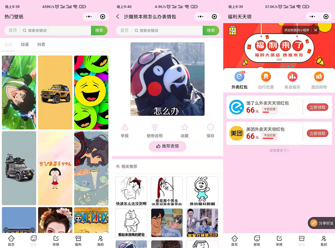 这是一套独立后台版的表情包小程序,这套源码现在非常的火,目前正版的价格在110左右,表情包**的版本,个人感觉设计挺漂亮的。后端源码采用的是ThinkCMF6.0的框架,前端是微信原生的代码,后端服务器配置推荐:Nignx1.18+Mysql5.6+PHP7.2,后台可设置福 利页面,也就是外卖cps,或者其他福利工具,可以采集福利对接到外卖侠那里