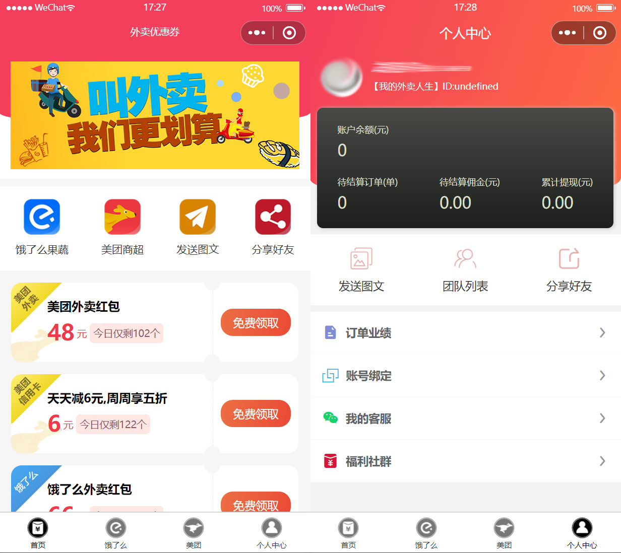 PHP > 外卖CPS推广小程序 美团饿了么红包 裂变 外卖霸王餐小程序 Laravel8.0后端