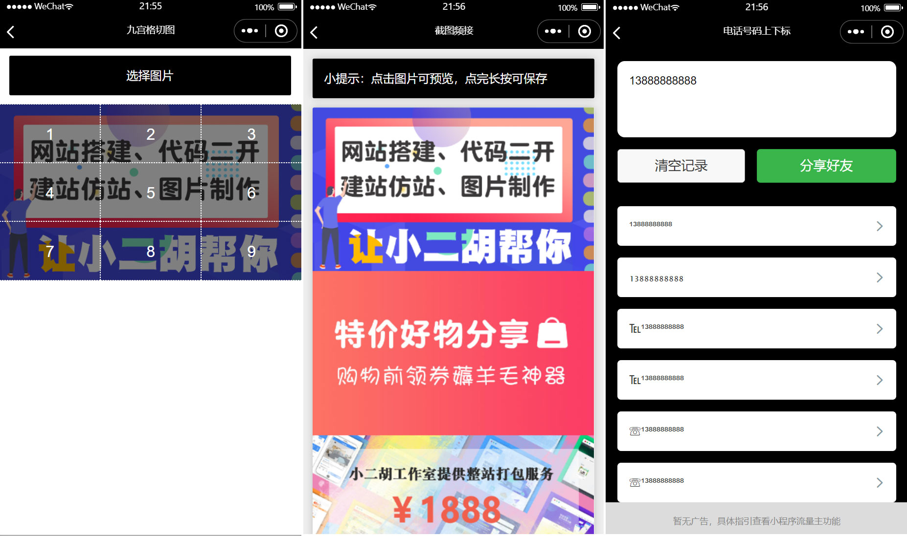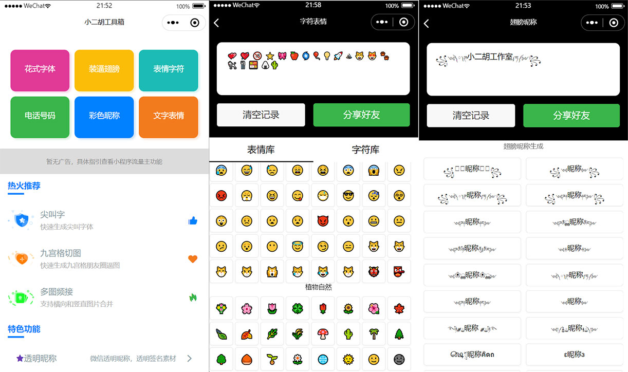 PHP > 微信彩色个性昵称 游戏取名 九宫格切图 多图拼接工具箱微信小程序源码