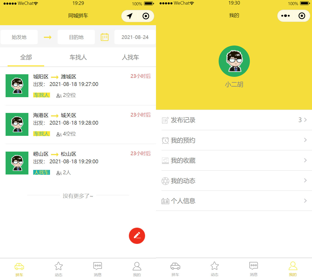 同城拼车、乡镇拼车小程序源码,找车、寻同路人,拼车出行,方便同程出行的用户,车主乘客自主发布拼车信息,并实现自能预约通知,使拼车更加方便快捷。