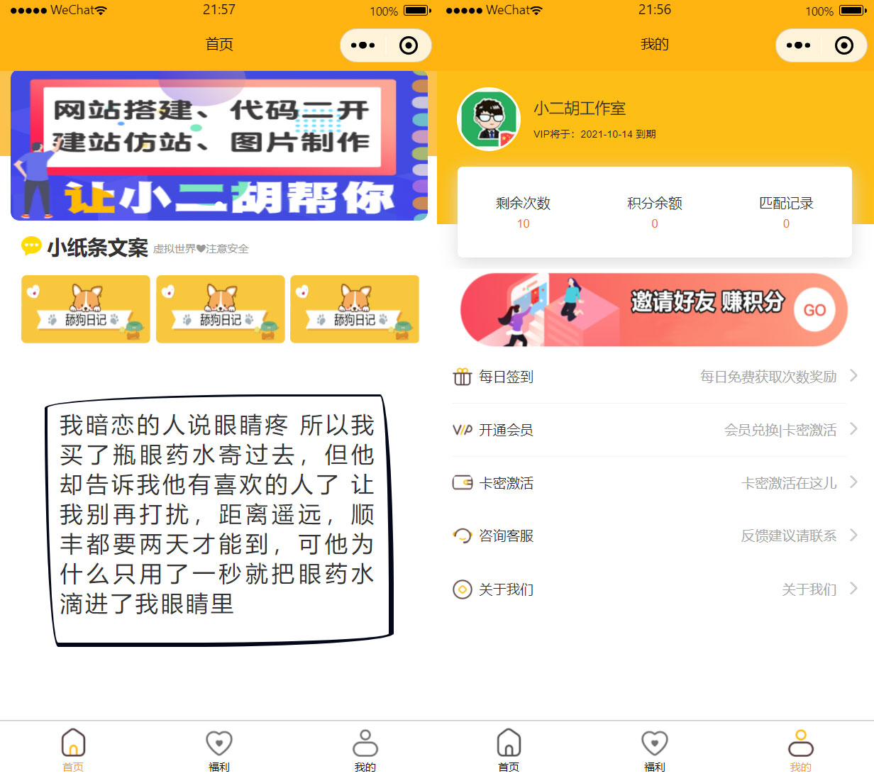 PHP > 舔狗小纸条文案 不知道干啥的福利综合小程序源码 ThinkPHP框架后台