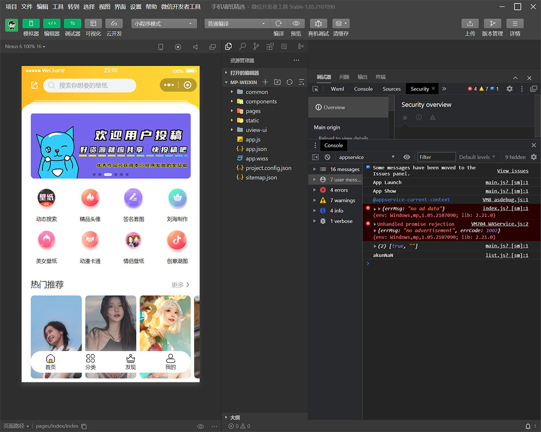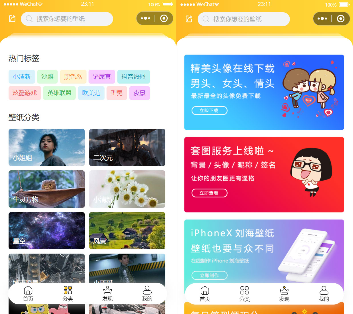 PHP > 最新完美版自动采集壁纸用户投稿壁纸微信小程序源码 微信QQ双端 亲测无错