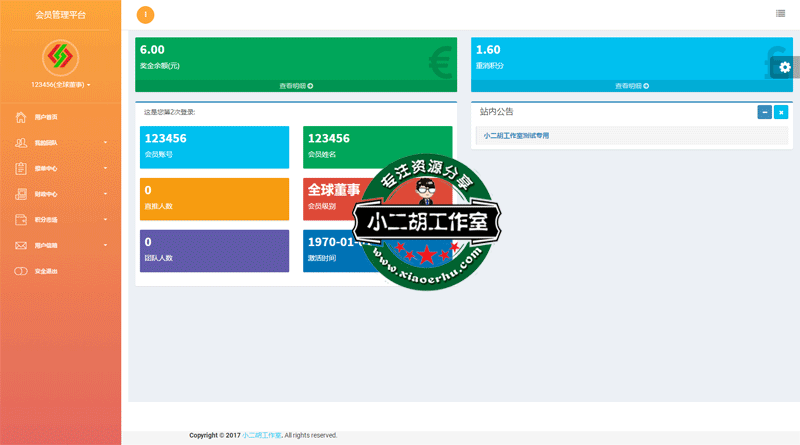 站长评测:所有功能完好,后台登录正常,具体作用没有深入研究,大体看起来像是做直销能用到的,需要的朋友自己拿去研究!