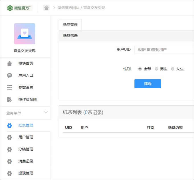 微信魔方 > 盲盒交友游戏微信小程序源码 公众号吸粉变现营销工具+分销