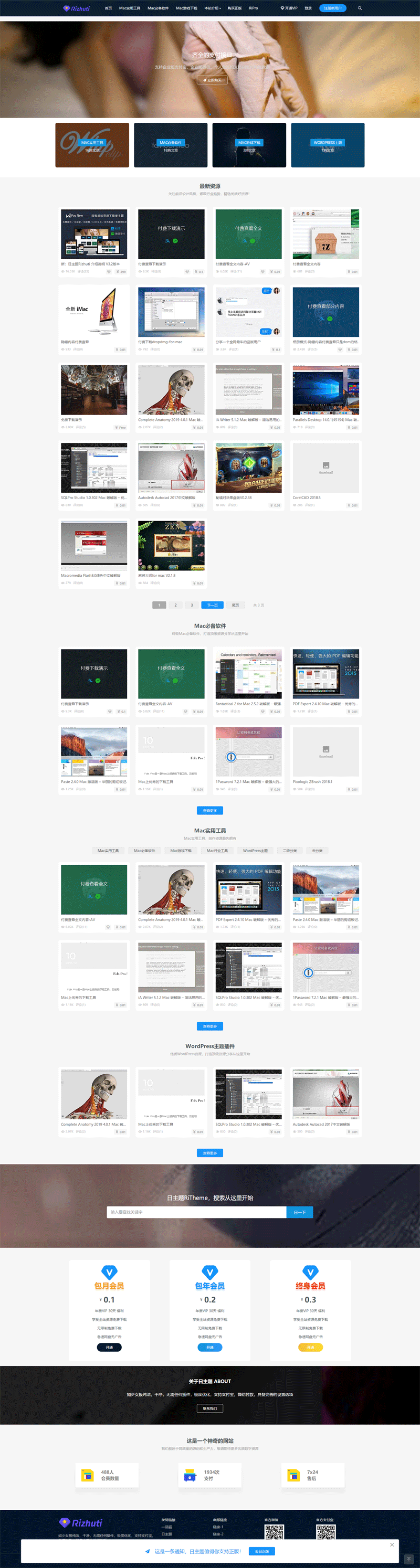 Wordpress > WordPress高端日主题Rizhuti3.3破解版,虚拟资源下载类站点源码